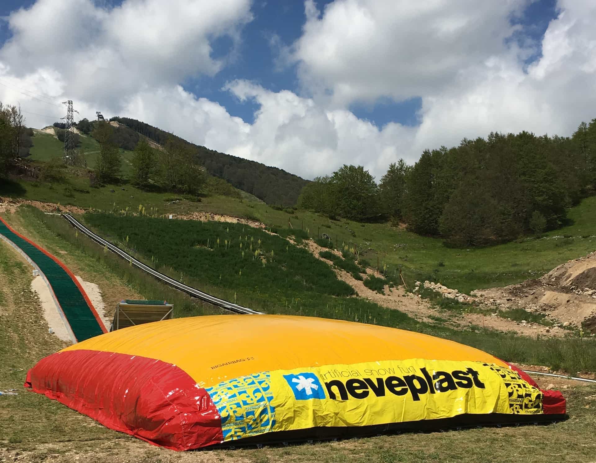 The Neveplast TUBBY center Coppo dell’Orso, Roccaraso is getting bigger! Next to the 120 meter long straight track, the one with parabolic turns of 130 meters and the one 40 meter Tubby slide for kids, the park has installed a fantastic slide ending with the BigAirBag. The brand new 100 meter long TUBBY JUMP is pure adrenaline!