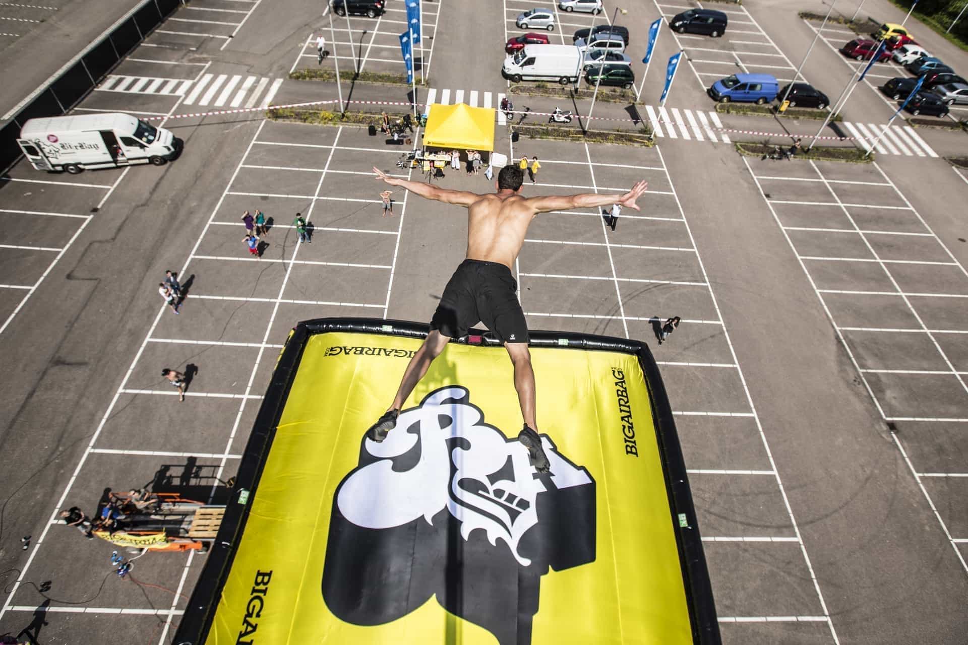 Der BigAirBag® Revolution sorgt für superweiche, supersichere Landungen. Getestet aus über 60 m Höhe, kann er mit den schwersten Stößen und den härtesten Stürzen fertig werden. Er dient gleichzeitig als riesige interaktive Werbetafel, die Ihre Brandingbotschaft in voller Farbe und High-Definition-Druckqualität übermittelt.